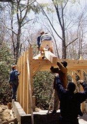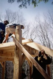 Building our post-and-beam retreat house with a lot of help from our friends!
